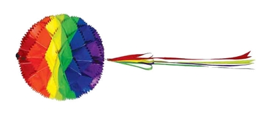 Party Ball in Rainbow Colours with a streame from irts base the ball measures approx 11inche the streamer measures 18inches Out Of Stock